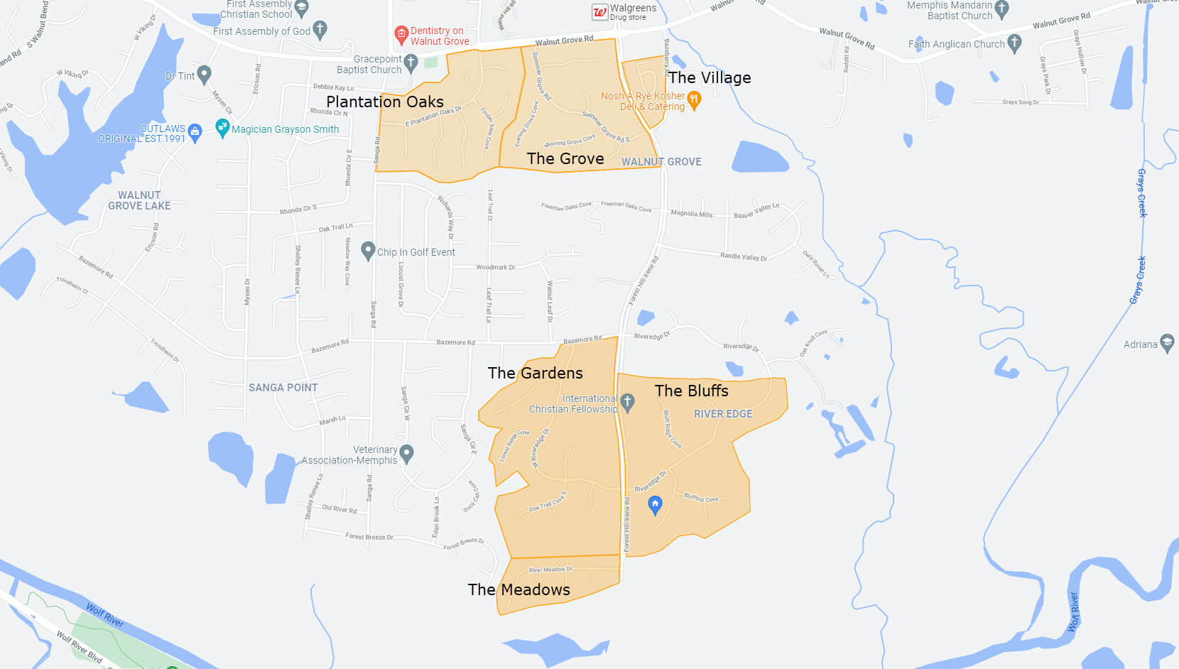 Located in South Cordova Tennessee, we were de-annexed from the City of Memphis in 2021. Our neighborhood is in a great location. It is only minutes from family activities at Shelby Farms and the Agricenter International that host the farmers’ market, horse shows, holiday shows, home shows and much more.